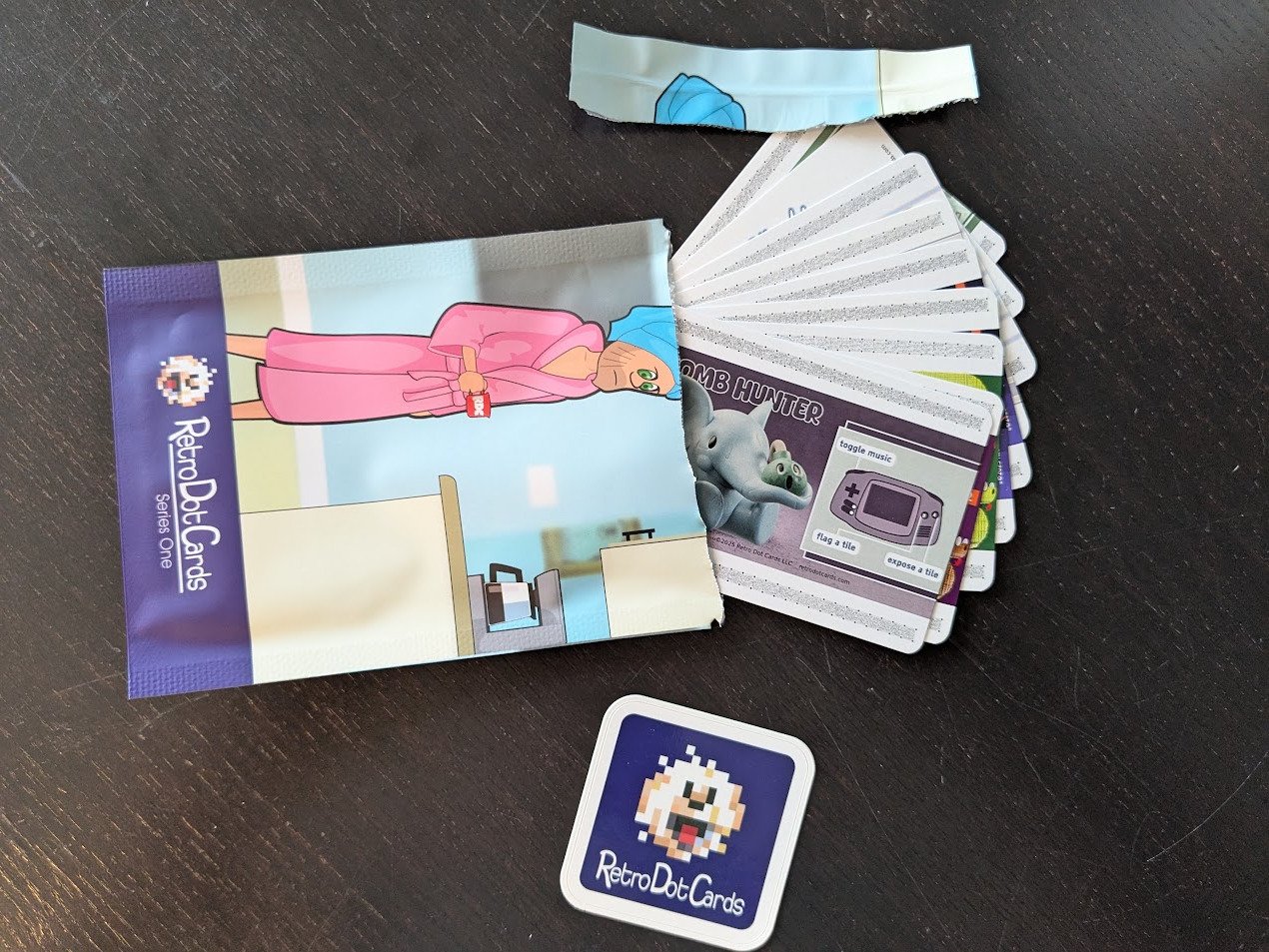 5 games, and a bonus achievement card sold together in one pack containing 9 cards, plus a sticker.